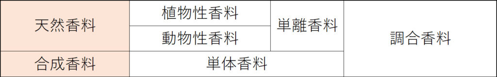 天然香料は約1500種類あり、合成香料は約200種類あり天然香料に似せられて作られている。
